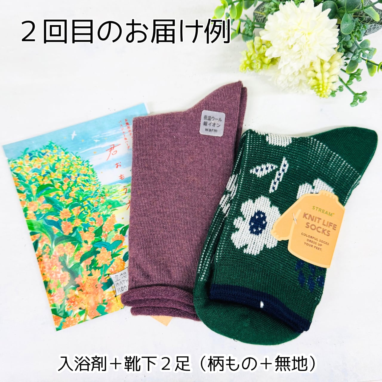 ・2回目:靴下2足(柄+無地)+入浴剤1つ